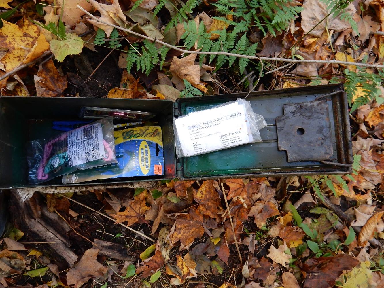 "This is what an ammo can looks like when it sits in the woods without being opened for 5 years. Wow, how can you top the feeling: we hiked an awesome section of the Bruce Trail today and found a well-stocked ammo can that has not been found since October 2010. The cache was found 8 time before that date, and then silence. It brings a new thrill to the hunt. Will the cache still be there? What shape will it in, if we do find it? The cache was there and it was in pretty good shape and full of new swag. And, we scored 83.66 points for finding this lonely classic hide"