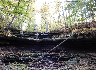 dexter and I went separate ways near GZ because I transposed digits into my gps. So after I figured that out I went to join him, figuring he would have found it by then. He hadn't, so I joined in. I checked about every place he had, starting to get that sinking feeling that maybe it's gone. Then I moved a piece of an old log, and there was an ammo can, wedged into a rock crevice behind a tree. The tree had grown so I had to cut away some bark to get the can out.